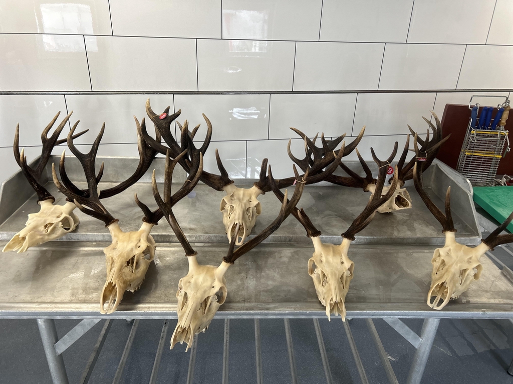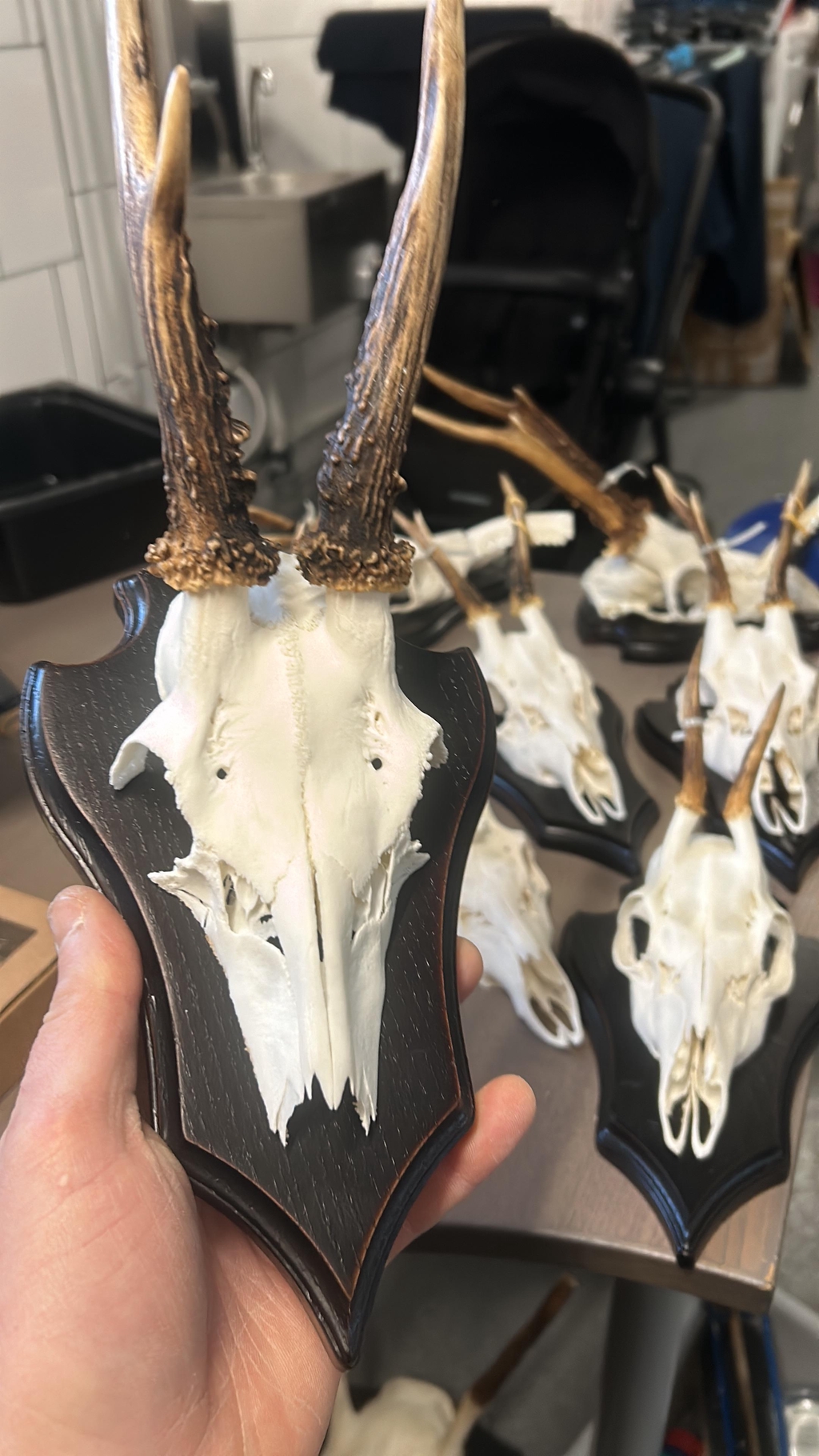 Handveredelte Aufbereitung von Jagdtrophäen wie Hirsch, Reh, Wildschwein, inklusive Reinigung, Präparation und Finish.